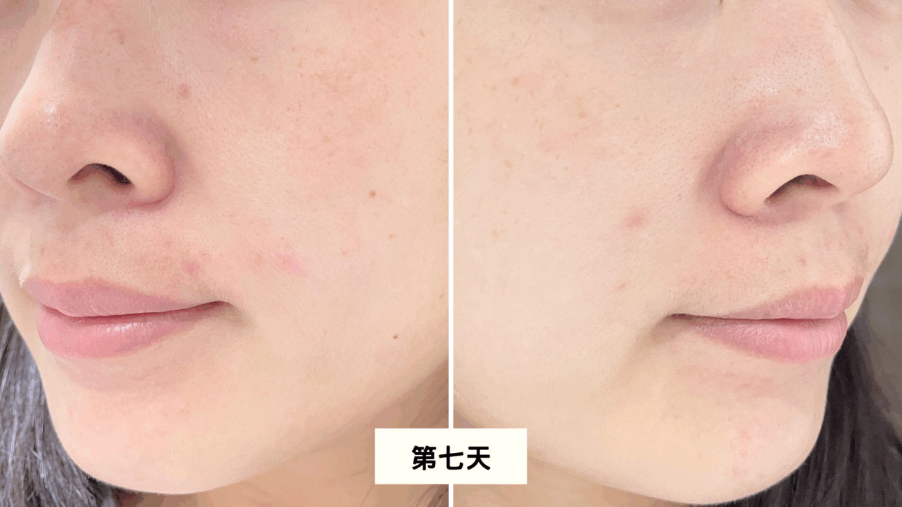 恢復用量使用到第七天後,肌膚再次恢復保水的狀態、毛孔也收斂許多。整體膚況變穩定,臉部乾癢泛紅機率減少許多,滋潤度相當令人滿意,也不會只有T字部位泛油光!身為容易色素沉澱的體質,逆轉時光緊緻精華消痘疤速度不輸酸類,而且更不會引起癢之類的副作用。