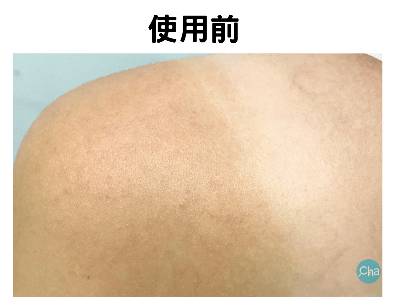 來到實測最後一天,經過兩週的塗抹,手臂膚色終於開始出現令人振奮的變化!,由於手臂整體膚色變白色差交界線已經不算太明顯;不過膚況部分覺得還是沒有太大變化,摸起來也並無感覺到細緻感,頂多就是沒那麼乾一點點而已,這點是覺得有點失望的地方。