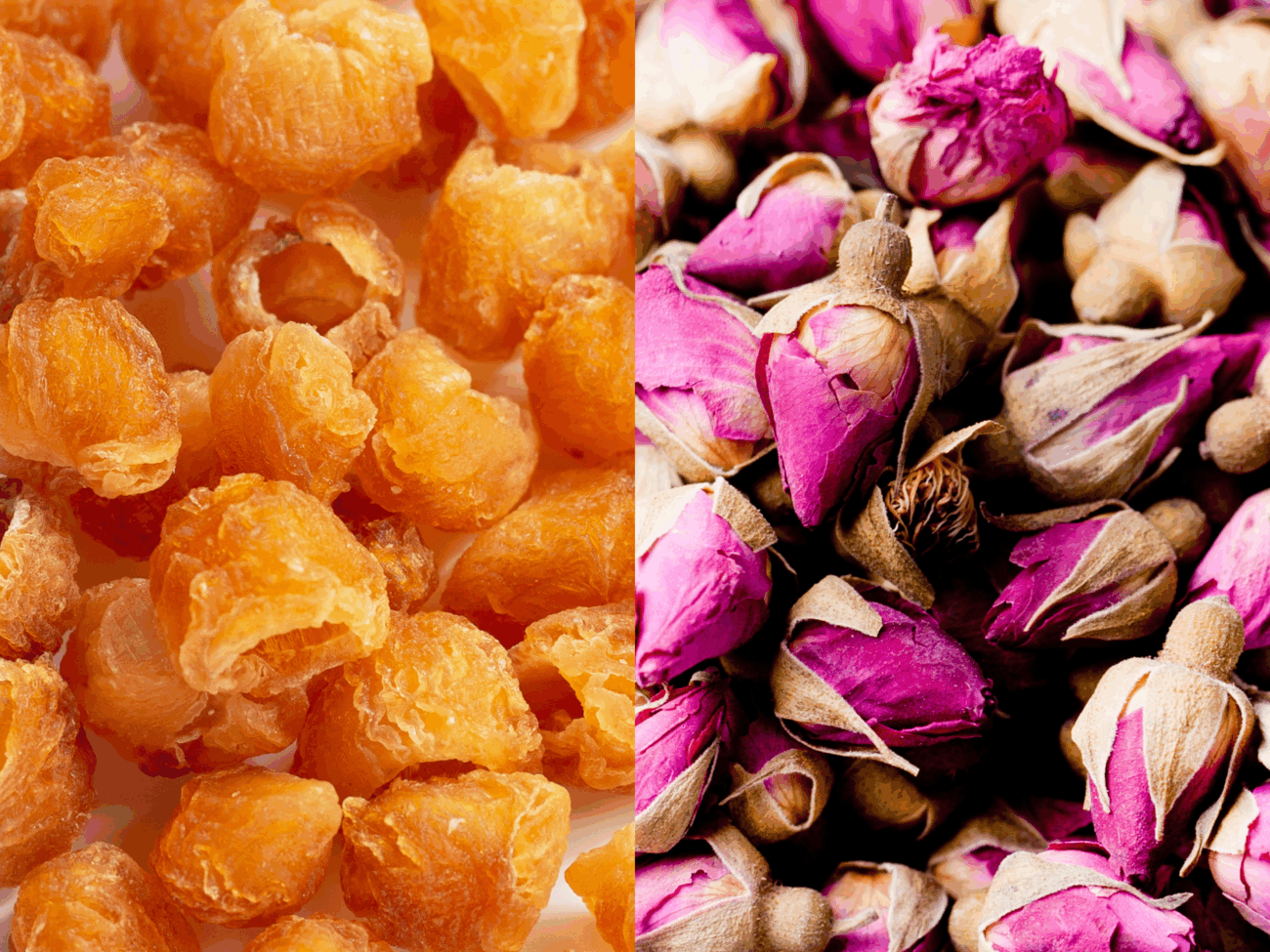 - 玫瑰花:疏肝理氣、活血養顏,還能調理經期不適、促進腸道代謝