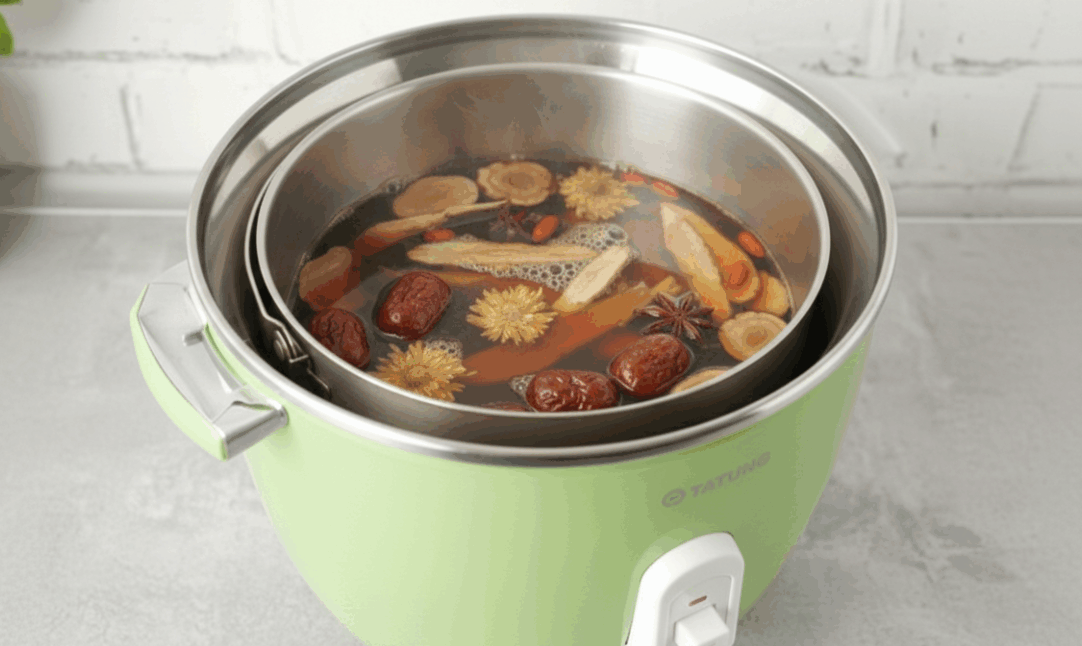 電鍋是台灣家庭的萬用神器,免顧火只要按下開關就能熬煮,完成後還能長期保溫,確保藥材功效徹底被煮出來。