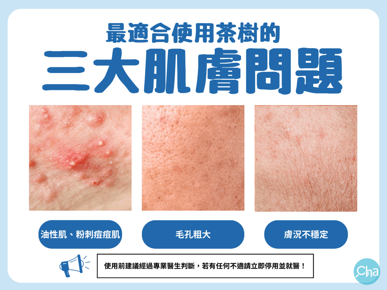 茶樹雖然是抗痘好手,但它的控油、清潔程度相對較強,並非所有膚況、膚質都能無差別使用,購入前,釐清茶樹的成分特性是否與肌膚需求相符相當重要。