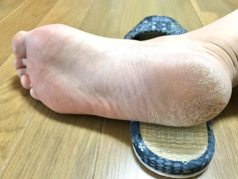 腳底肌膚沒有皮脂腺可分泌皮脂維持油水平衡,增厚的角質缺乏油脂滋潤,就會因乾燥而裂開,嚴重時還會引發出血。冬天濕度較低的時候,更會在無形之中加劇了腳後跟龜裂的情形。