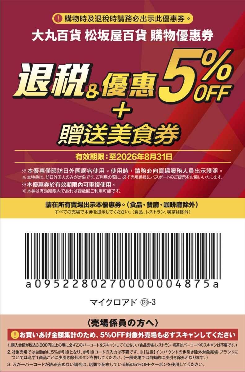 2025年日本逛街必備!免費領取【大丸松阪屋】百貨折價券,消費滿3000日圓即享95折