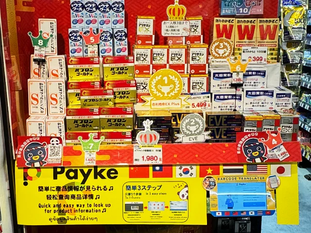 - 醫藥品(3F):合力他命、止痛藥、眼藥水、痠痛貼布、龍角散、易利氣、大正百保能、太田胃散、三得利芝麻明E…等。