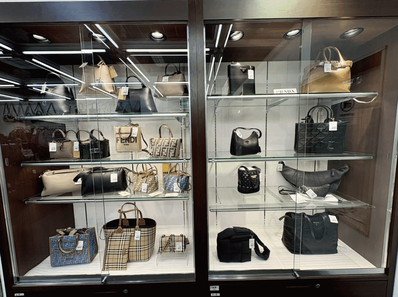 - 名牌包(4F):Hermès 愛馬仕、Louis Vuitton、Prada、Gucci、Celine、Coach、YSL、Bottega Veneta、Loewe…等。